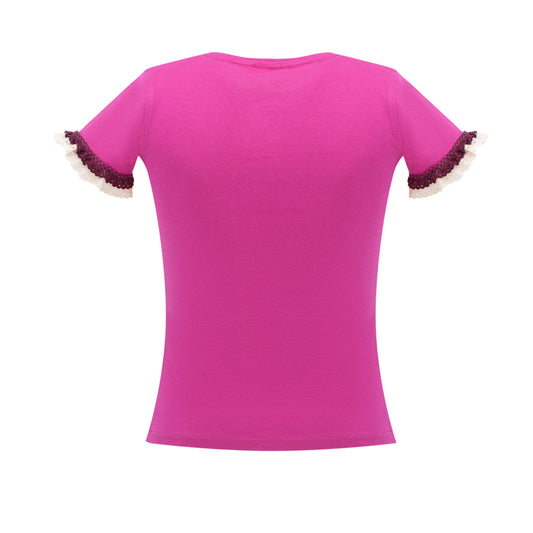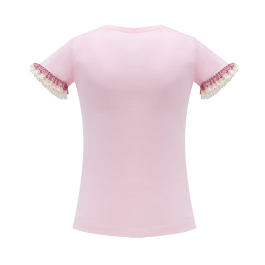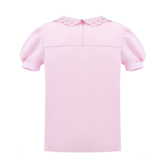 Eyelet Lace Collar T-Shirt in Pink