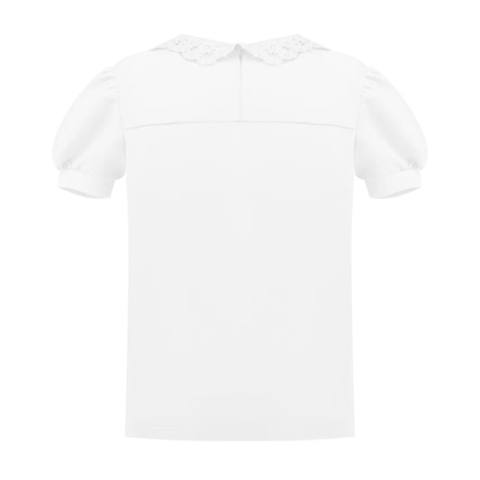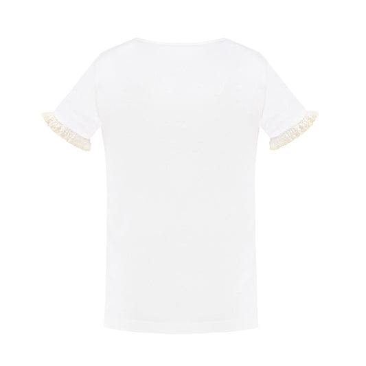 Eyelet Lace Collar T-Shirt in White